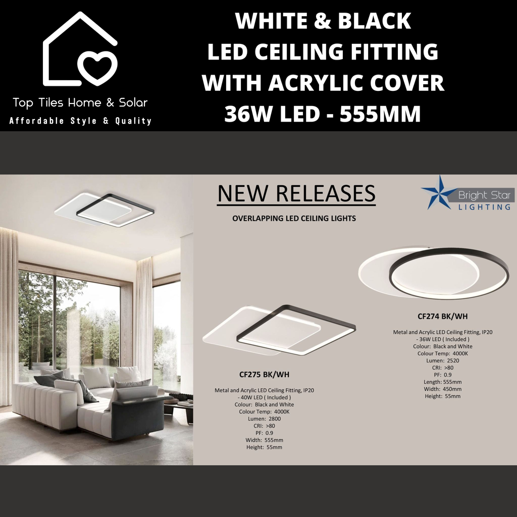 White & Black LED Ceiling Fitting with Acrylic Cover - 36W LED - 555mm