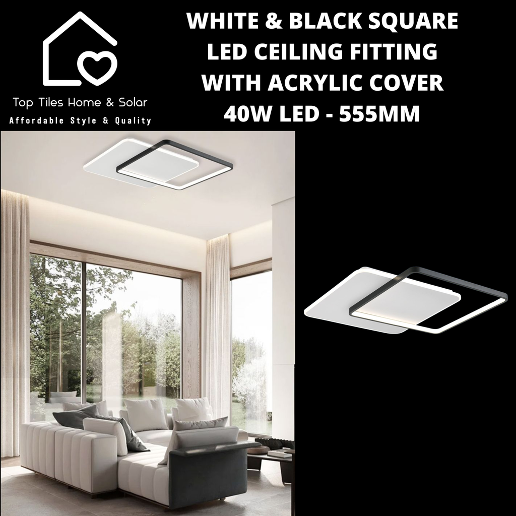 White & Black Square LED Ceiling Fitting with Acrylic Cover - 40W LED - 555mm
