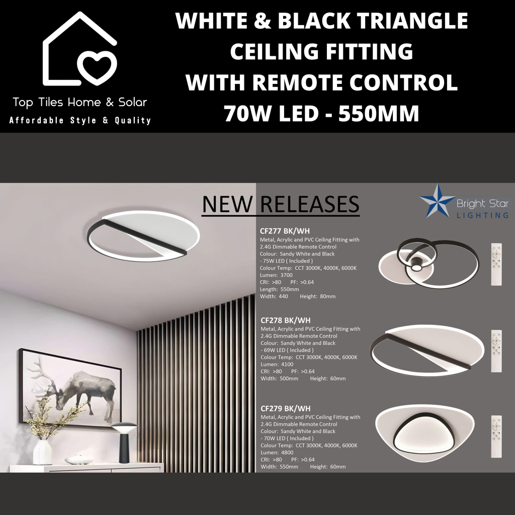 White & Black Triangle Ceiling Fitting with Remote Control - 70W LED - 550mm